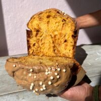 El Panettone de Caramelo Salado de Casabase hecho en exlusiva por el pastelero pluripremiado Roberto Moreschi de la pasteleria Robeto Pastry en Chiavenna en las Alpes. Ningun tipo de crema, solo Carameloy escama de sal. El contraste dulce salado es increible. Masa madre, mantequilla de montaña, una LOCURA!!