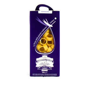 Los rigatoni Afeltra, elaborados con sémola de trigo cuidadosamente seleccionada de trigo 100% italiano, se mezclan con agua de las montañas Lattari, laborados en bronce y se secan lentamente durante hasta 48 horas.